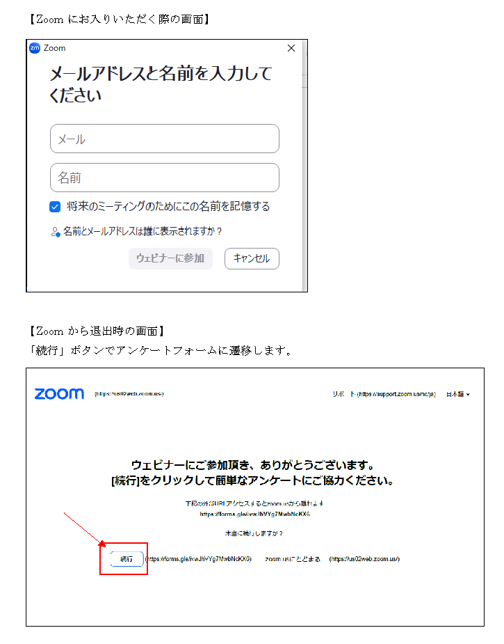 Zoomから退出される際にはアンケートにお答えください。