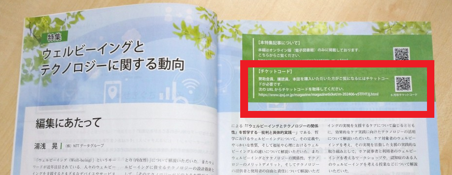 賛助会員の方、購読員で会誌を購読されている方、書店などから冊子を購入された方は、チケットコードをご利用のうえ閲覧してください。