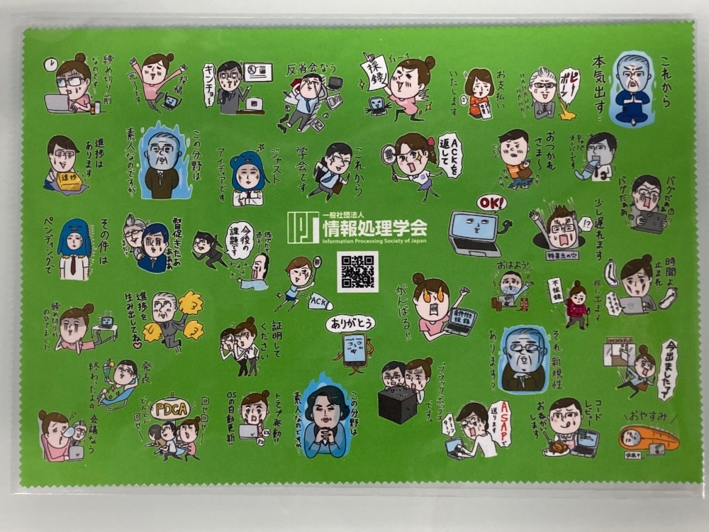 1.情報処理学会ファイバークロス(スマホ・メガネ拭き)[約30cm x 20cm(ほぼA4サイズ)] 1枚無料進呈